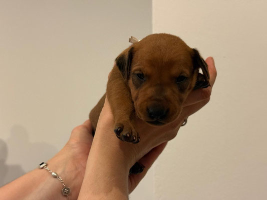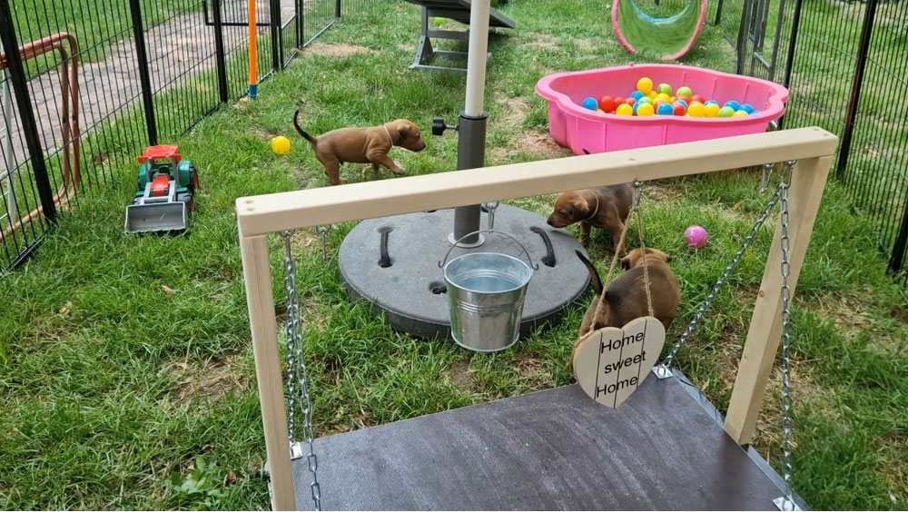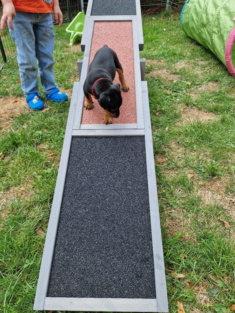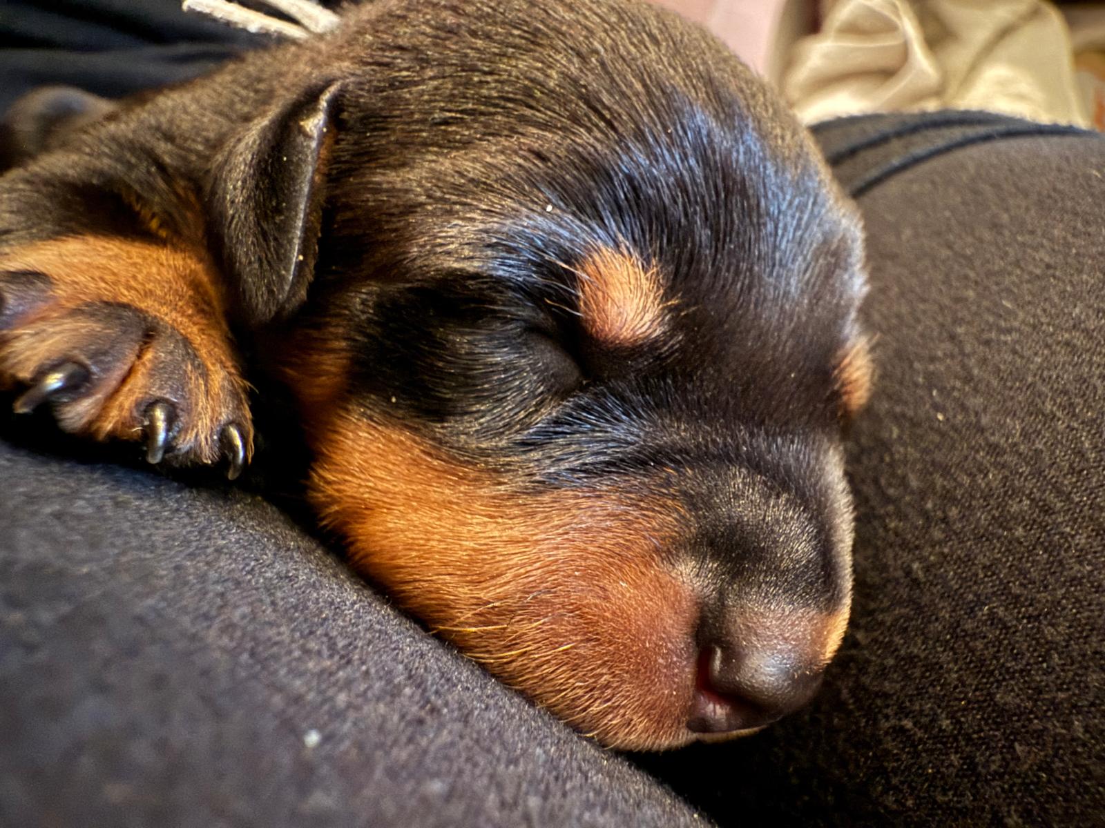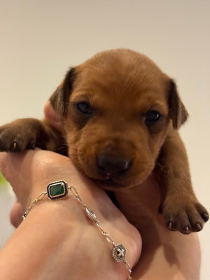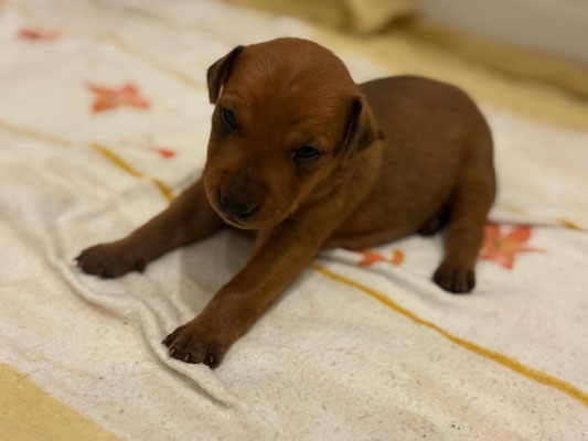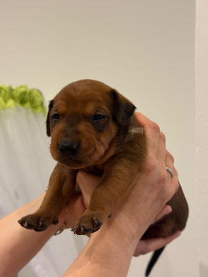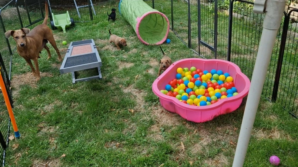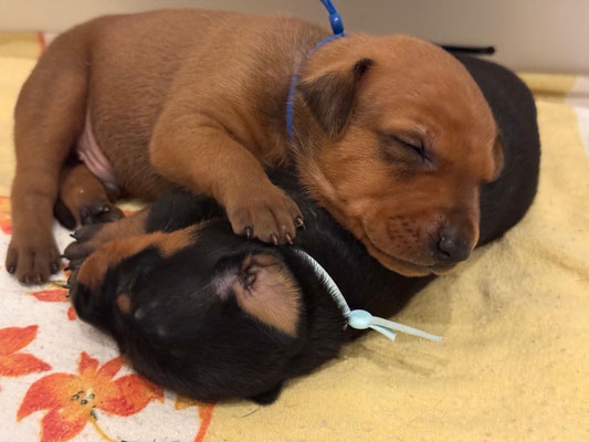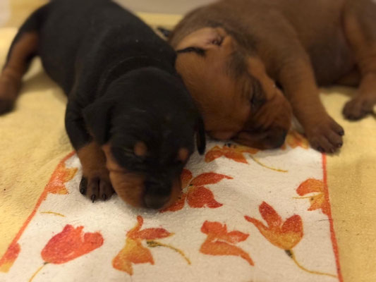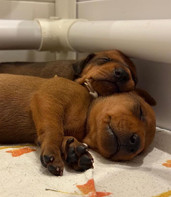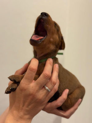 Update 09.08. Alle wachsen und gedeihen prächtig. Die Mahlzeiten schmecken aber auch hervorragend und wir trinken nur noch wenig bei der Mama. Das findet sie wegen unserer spitzen Zähnchen auch gar nicht mehr so toll. Mittlerweile erkundet die Meute auch den Auslauf draußen. Nach anfänglichem Zögern, haben sie nun jeden Tag mehr Spaß daran die Welt draußen zu erleben. Allerdings sind wir nach den Eindrücken auch schnell wieder müde :-)