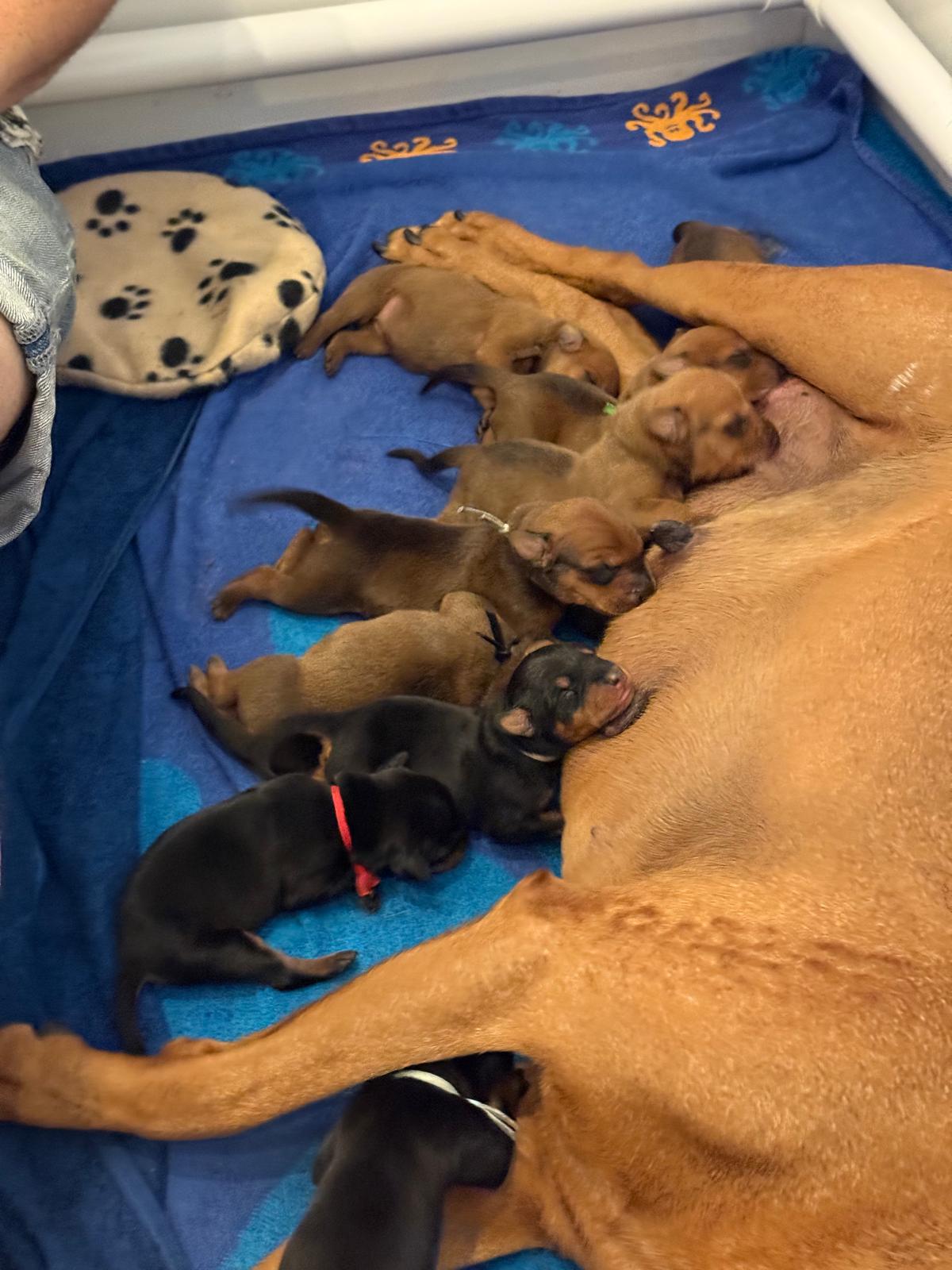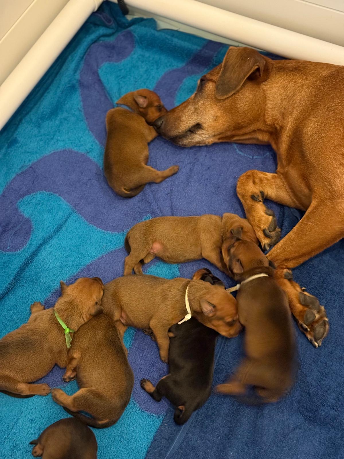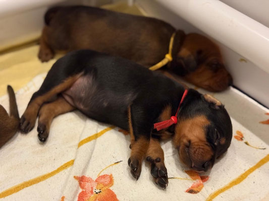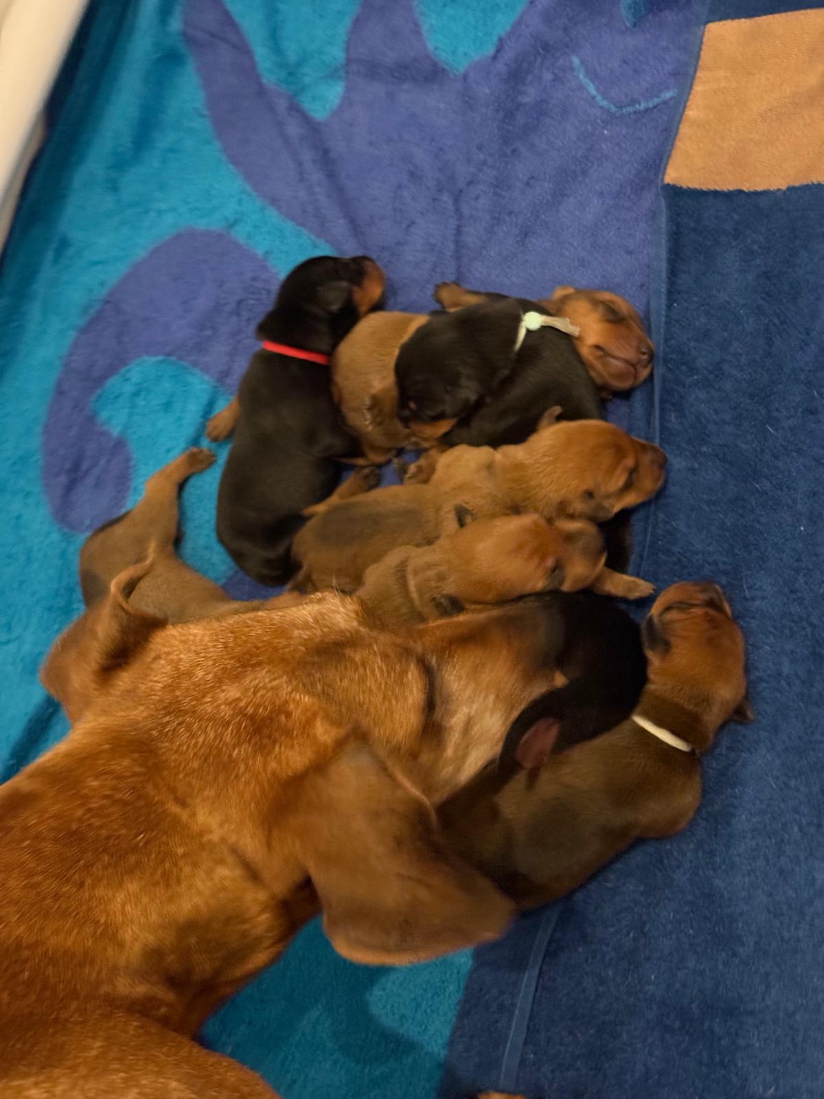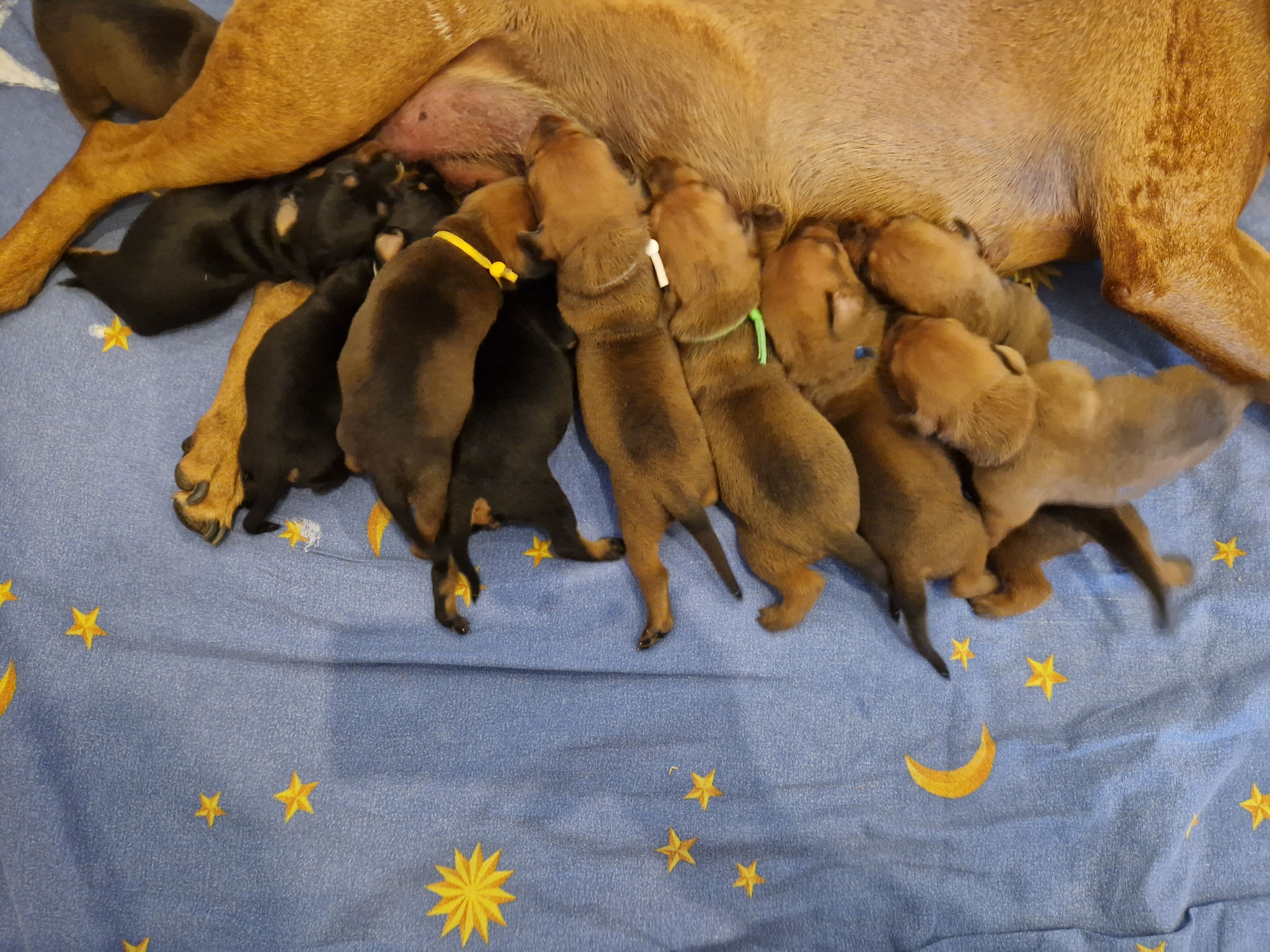 Update 21.07.25: Der Mama und den Welpen geht es gut und die Geburtsgewichte haben sich zum größten Teil bereits verdoppelt. An der Milchbar wird das Gedränge um die passende Zitze nun auch immer energischer :-)