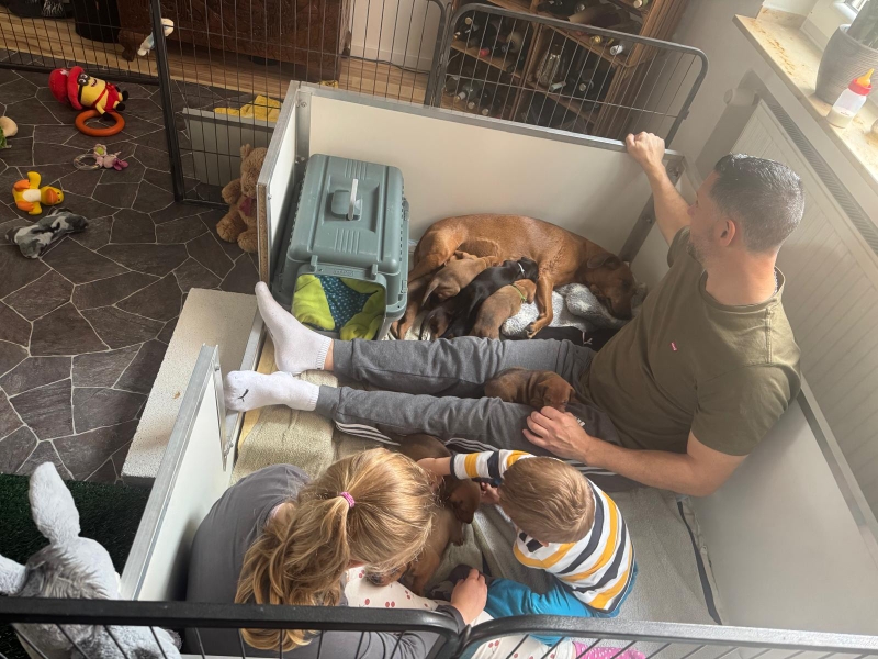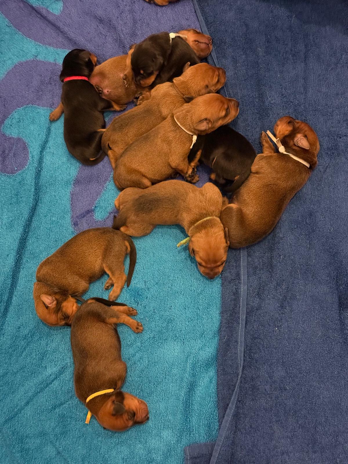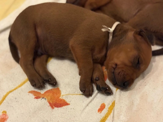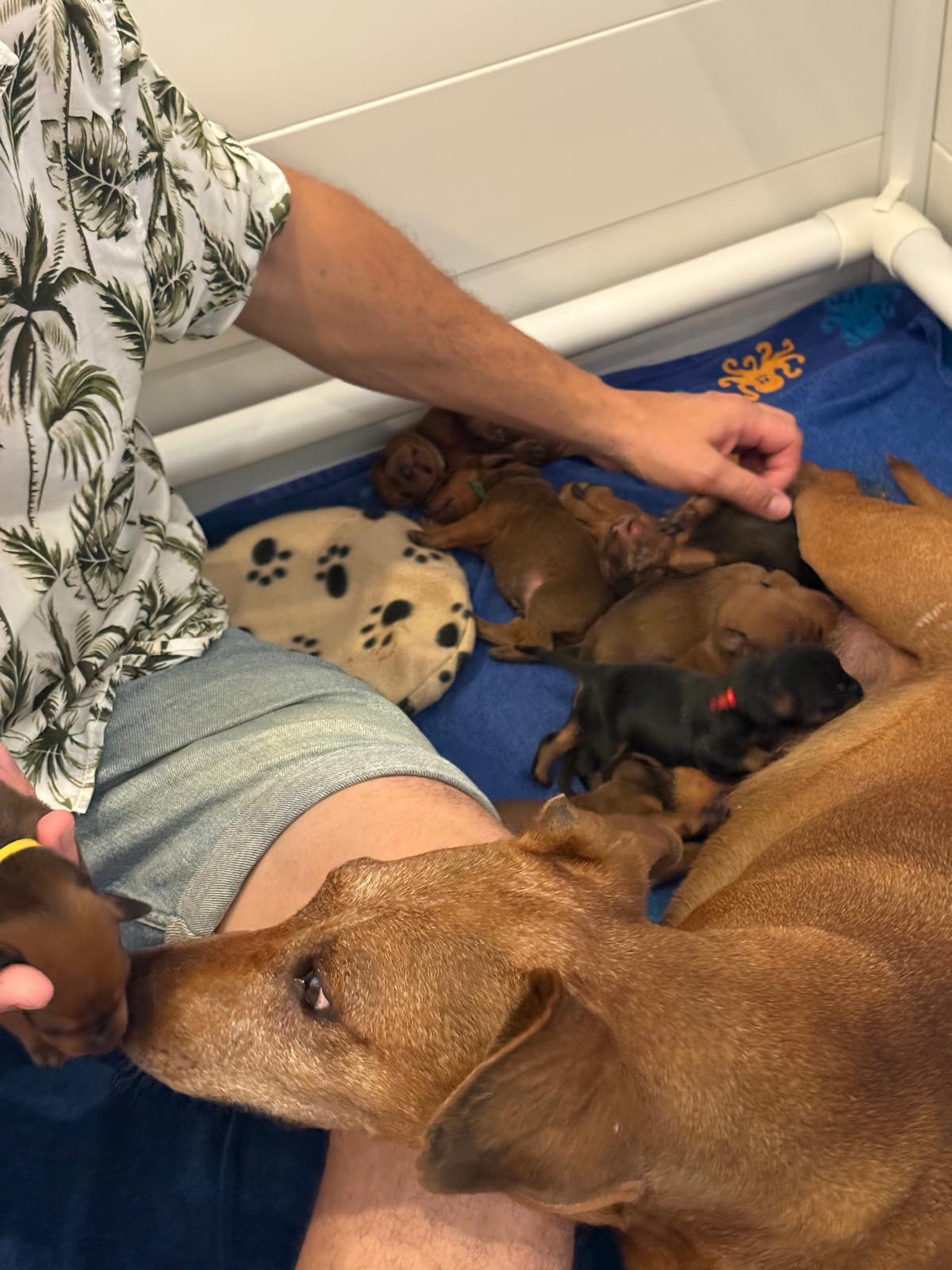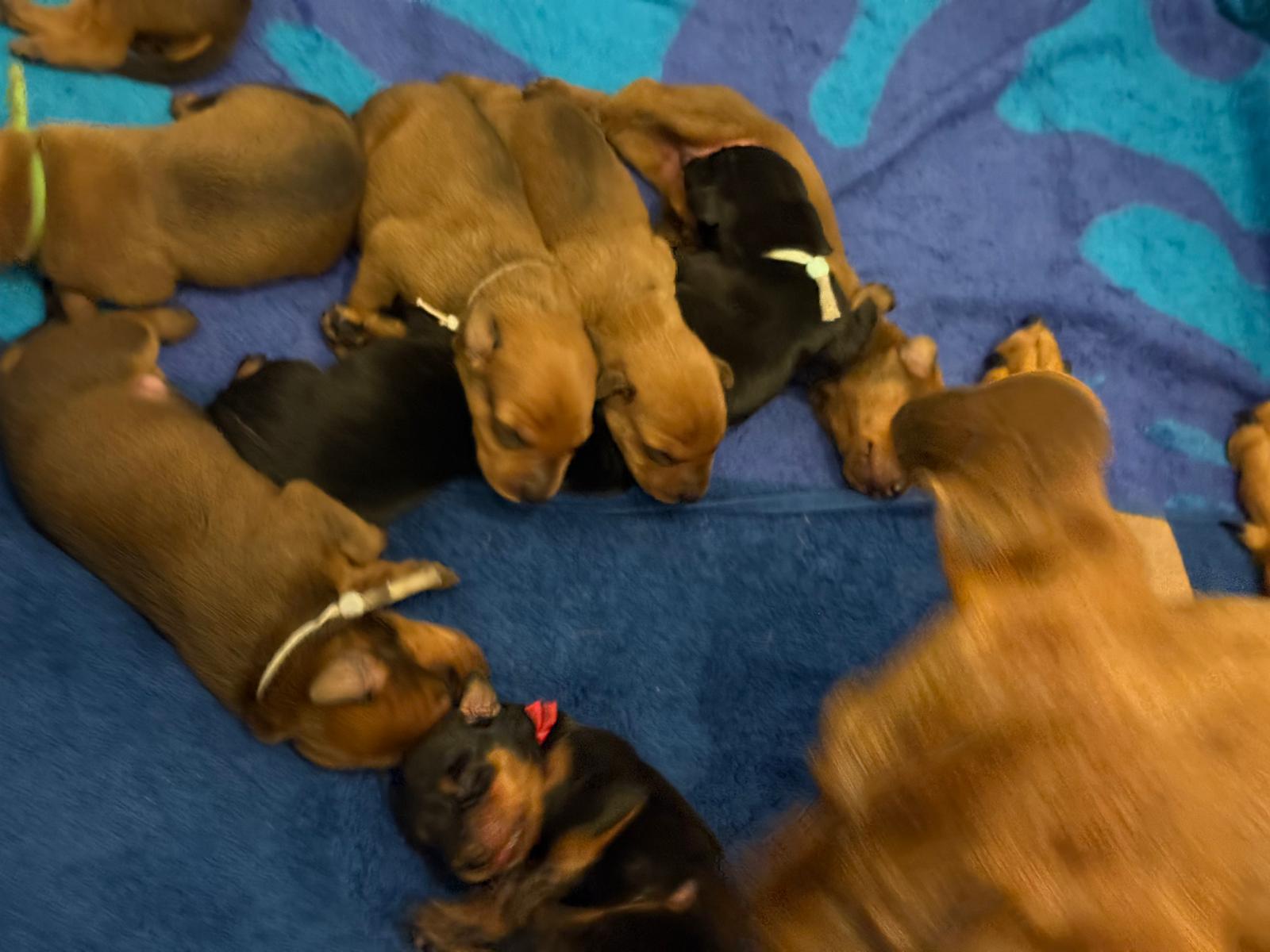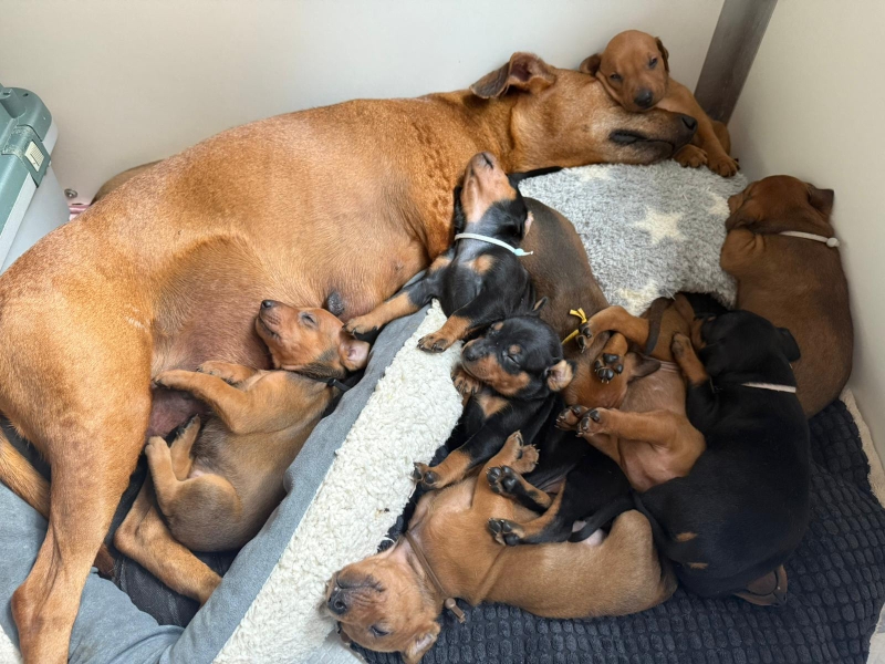 Update 21.07.25: Der Mama und den Welpen geht es gut und die Geburtsgewichte haben sich zum größten Teil bereits verdoppelt. An der Milchbar wird das Gedränge um die passende Zitze nun auch immer energischer :-)