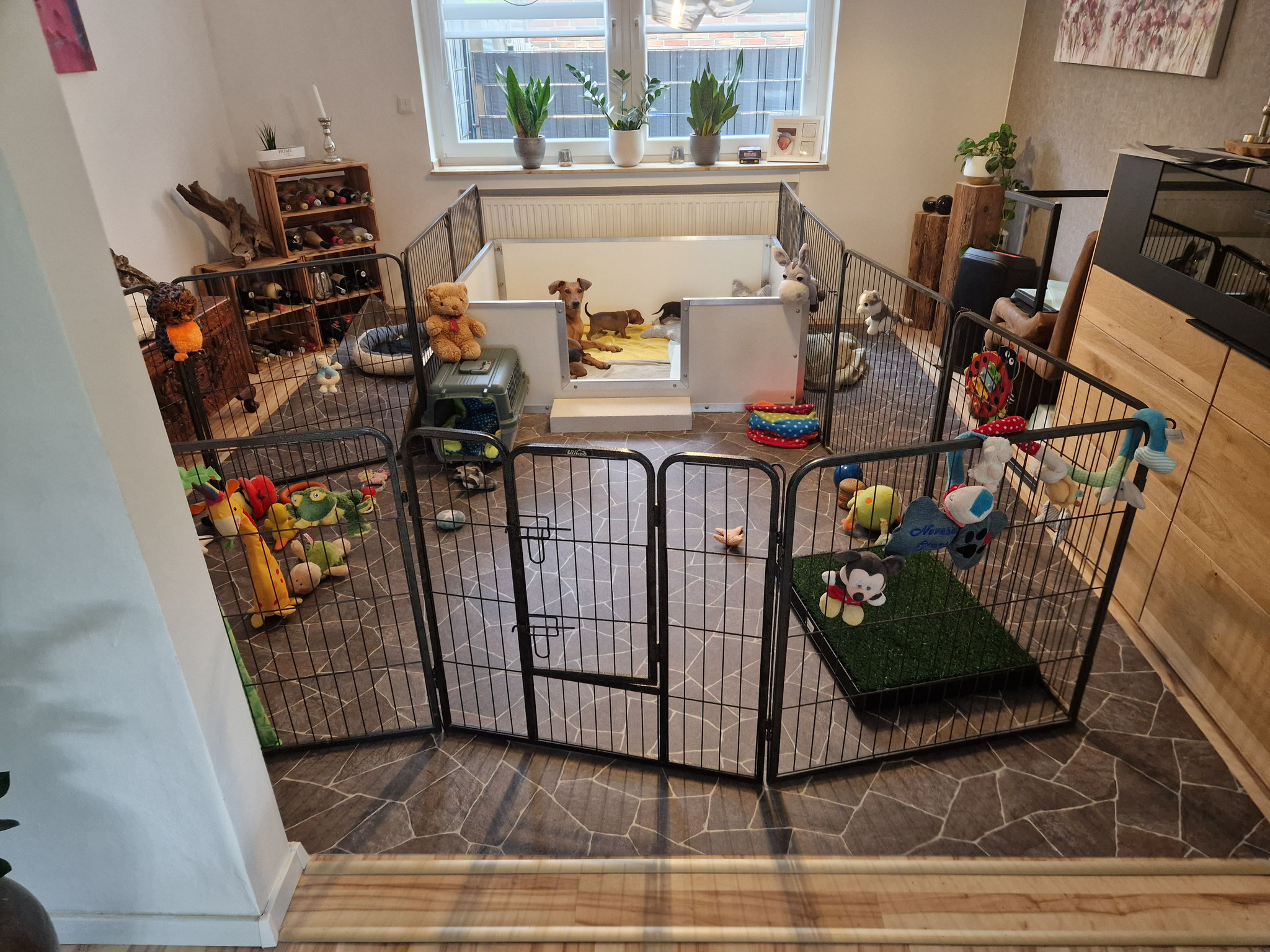 Update 02.08: Heute ist die Bande eine Etage tiefer gezogen, wo sie mehr Platz haben und nun auch den angrenzenden Auslauf mit nutzen können. Hier sind die kleinen mittendrin unter uns und haben nun einiges neues zu erkunden.